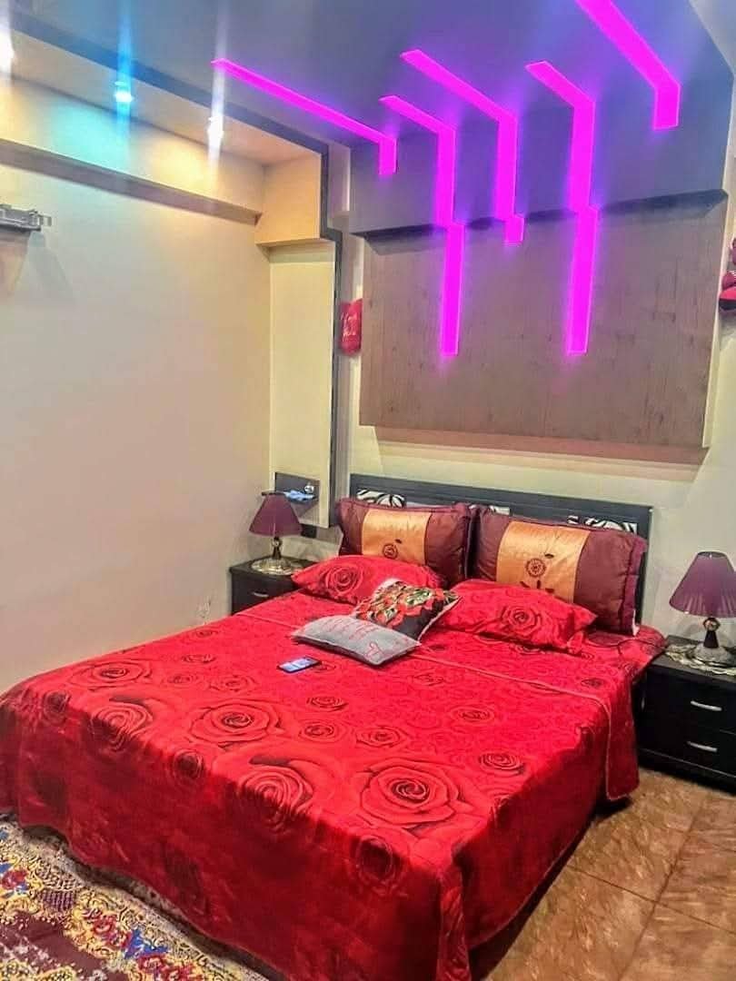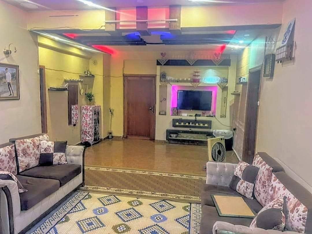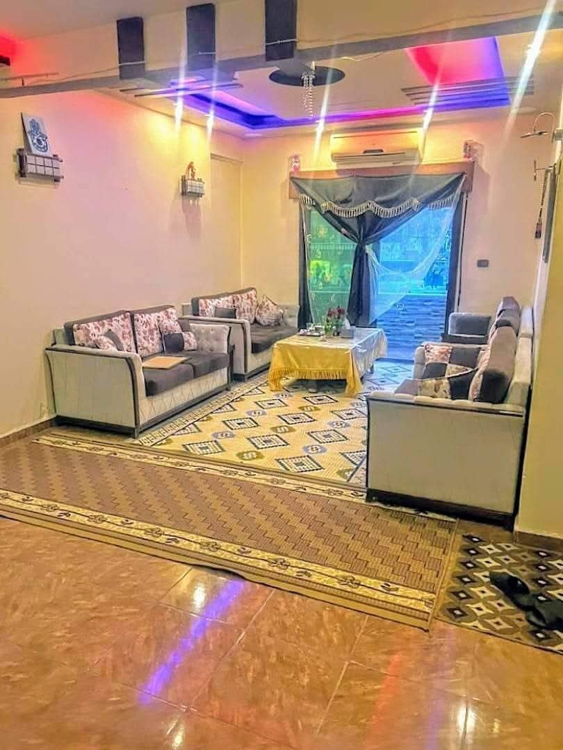 يضم صالون، غرفتين نوم، مطبخ، حمامين (أحدهما للضيوف)، بتجهيز داخلي ممتاز كما يظهر بالصور.