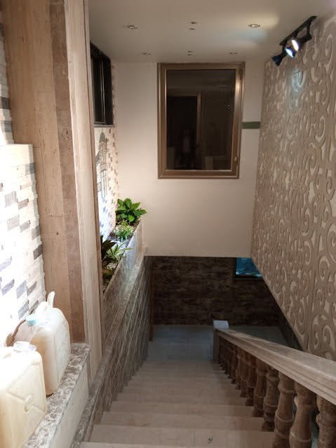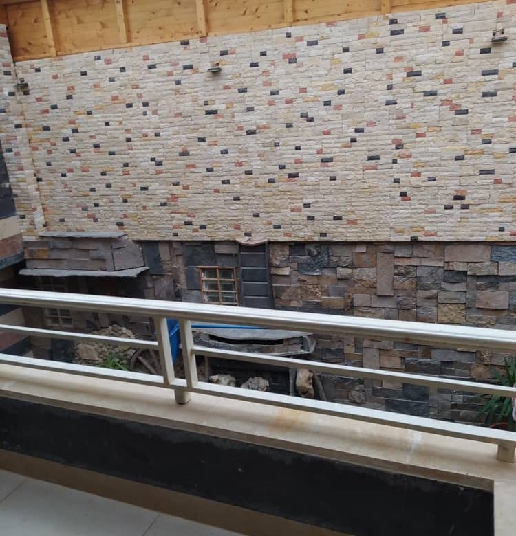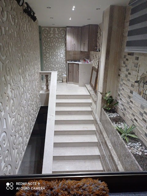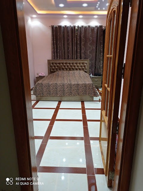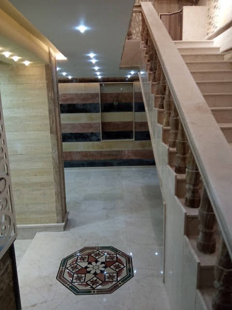 - الطابق الأرضي: صالون واسع + غرفة سفرة + مطبخ أميركي + غرفة مكتب + حمام